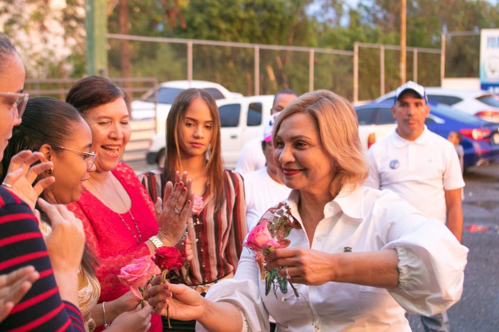 A su entrada al evento entregó a cada madre una flor, luego de ser recibida a una sola voz con la consigna repetida, «Ella es».