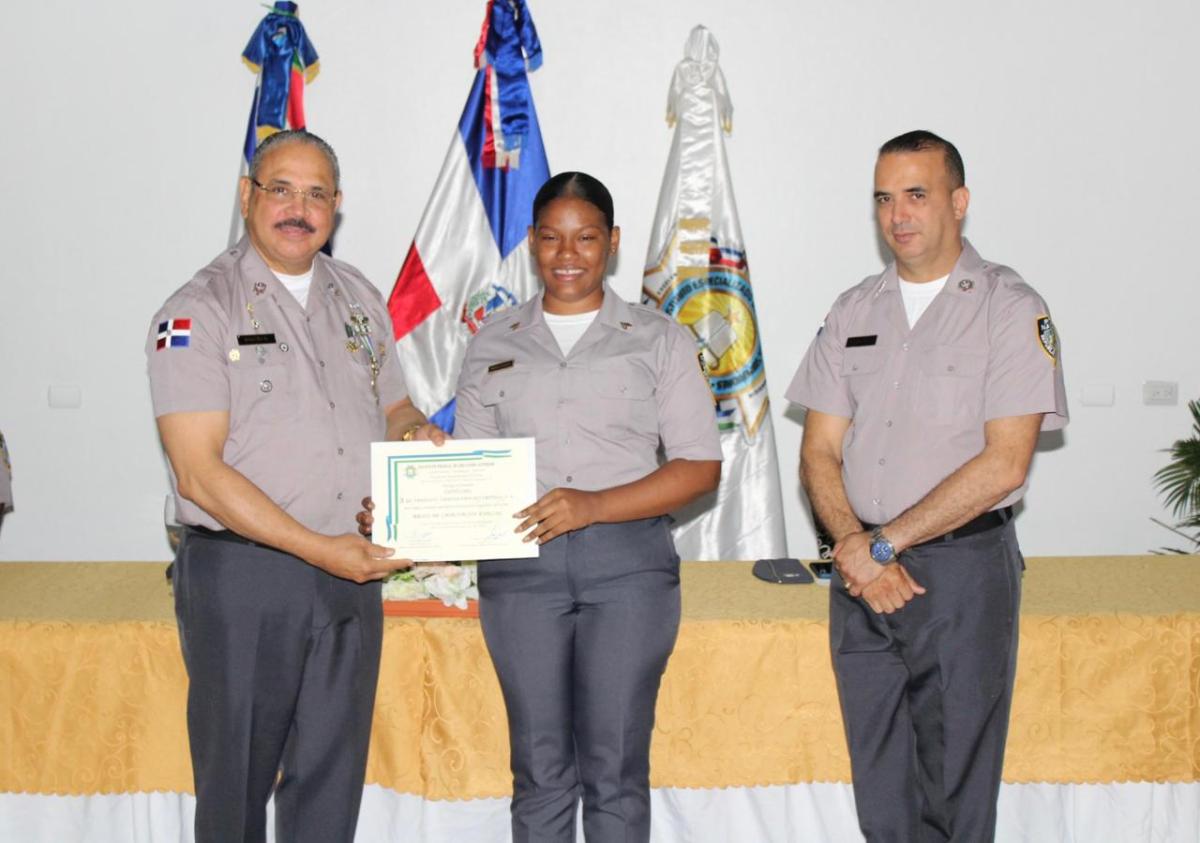 Al hacer la entrega de las certificaciones, el general Guzmán Badia y el coronel Landeta Estrella, en representación del director general de la Policía Nacional mayor general Eduardo Alberto Then, felicitaron a los graduados, a quienes exhortaron aplicar los conocimientos adquiridos en el ejercicio de sus funciones como policías, en beneficio del país y de la seguridad ciudadana.