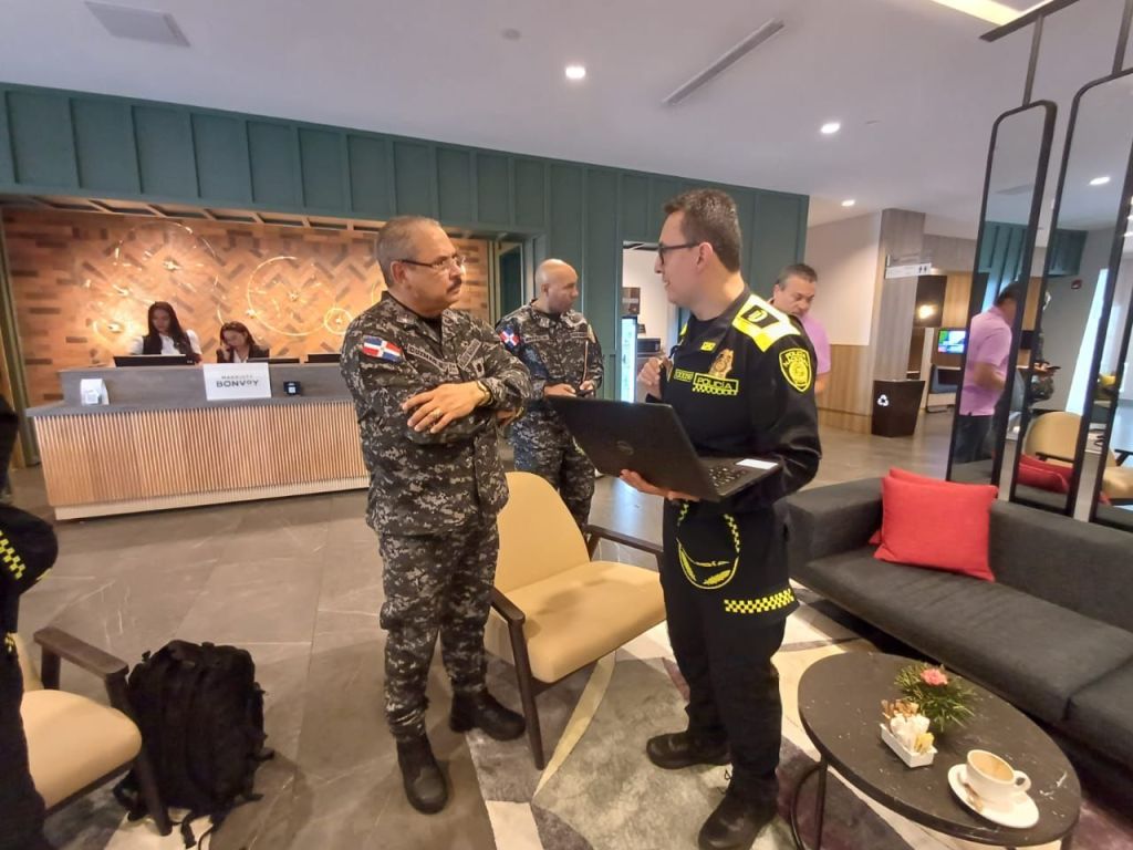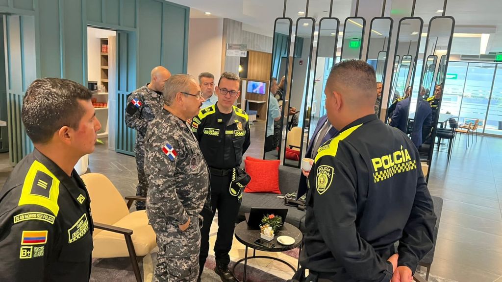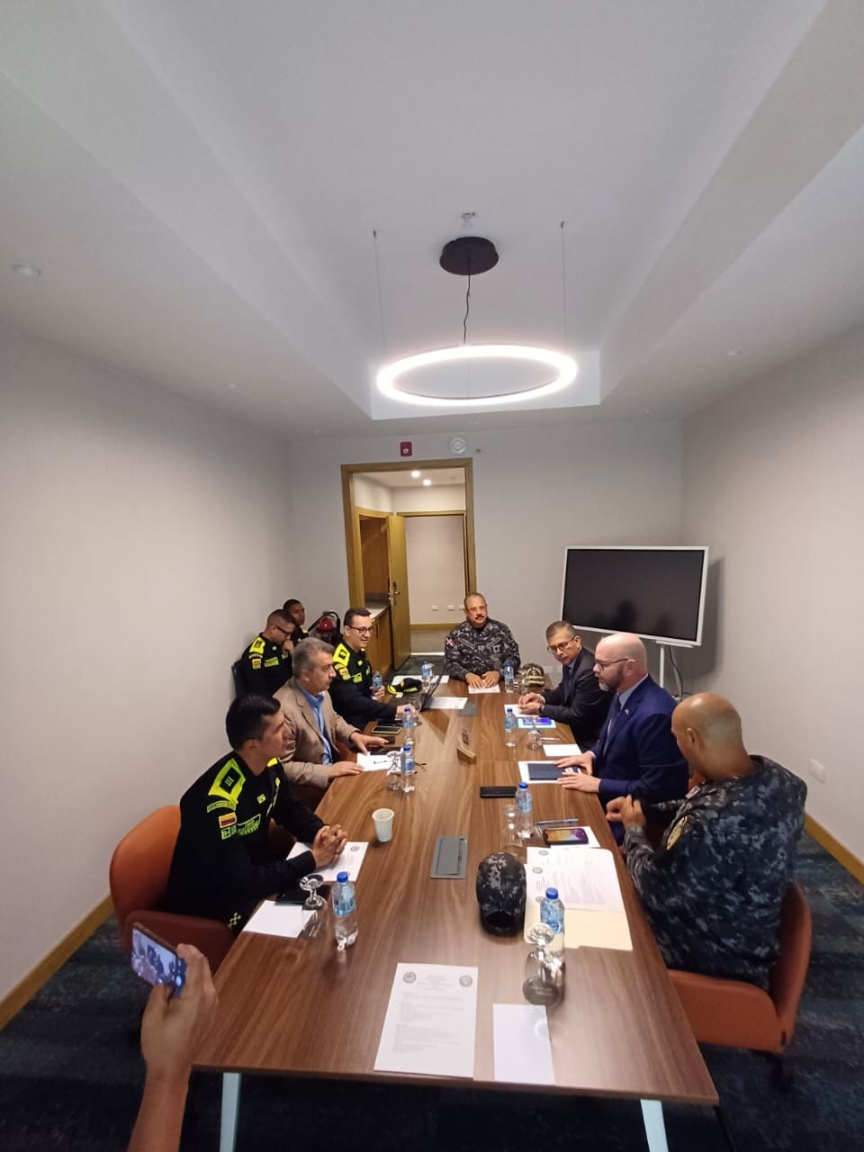 Los delegados estadounidenses representantes de la Sección Internacional de Antinarcóticos Para la Aplicación de la Ley (INL) y los policías colombianos fueron recibidos con beneplácito por el general Guzmán Badia, el pasado lunes en las instalaciones del Hotel Courtyard by Marriott, Santo Domingo, acompañado del coronel Nandy Reyes Santos, enlace académico internacional del IPES.