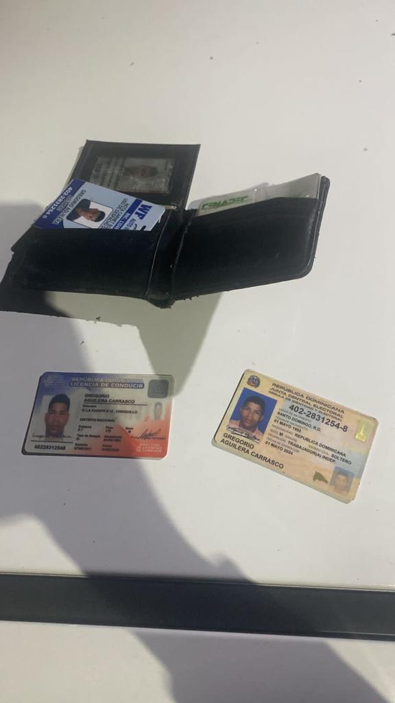 En el interior del vehículo fue encontrada una cartera de hombre, con varios documentos a nombre del denunciante.