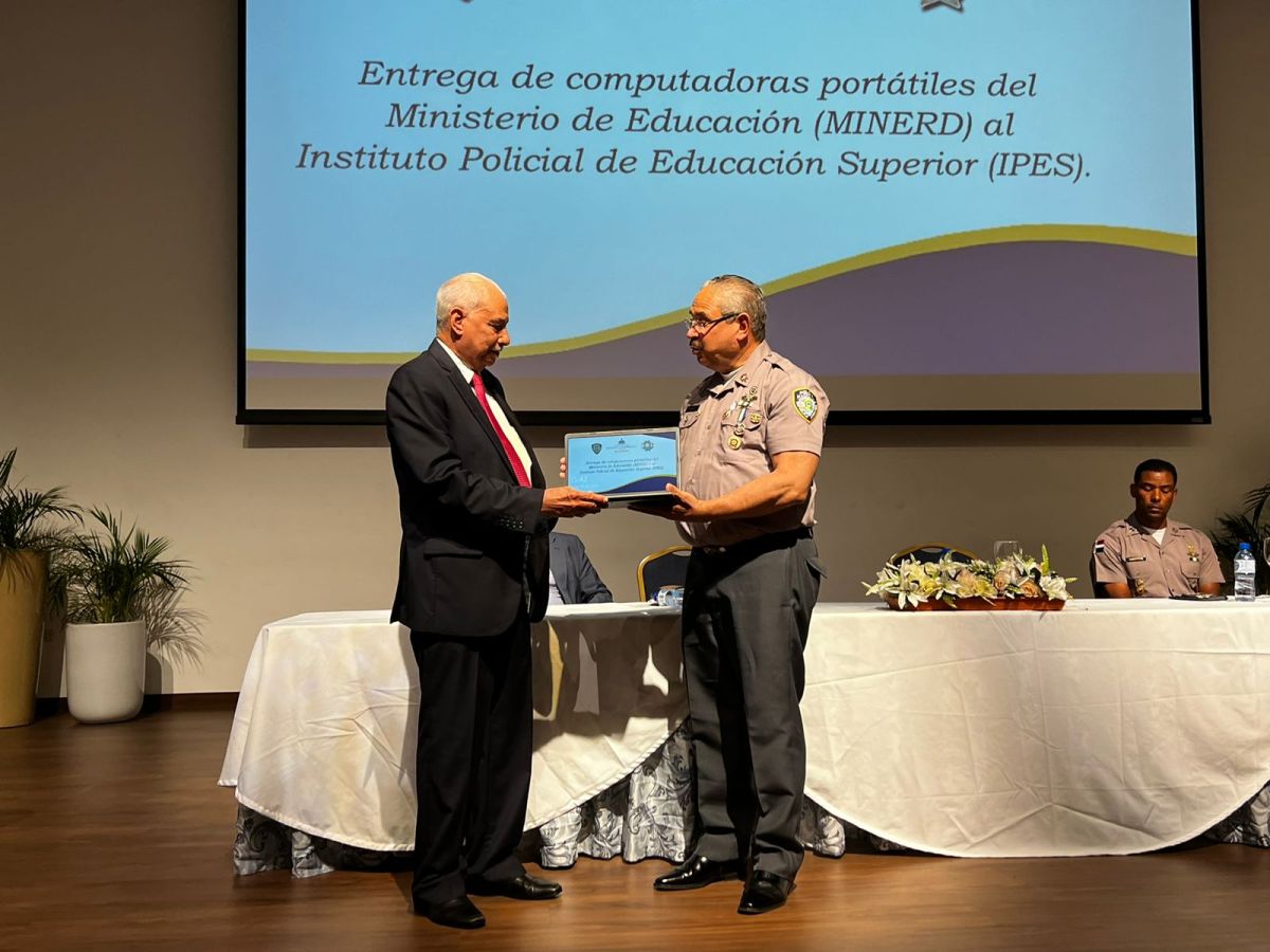 Santo Domingo, RD.- Nuestra Policía Nacional inmersa en un proceso de transformación y restructuración de su sistema educativo recibió la cantidad de 400 computadoras laptops, que fueron proporcionadas por el Ministerio de Educación (MINERD) para el equipamiento de las escuelas de formación y capacitación que integran la estructura organizacional del Instituto Policial de Educación Superior (IPES).