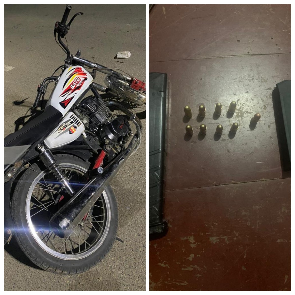En cuanto a los cargadores, uno para treinta cápsulas y el otro para 17, con nueve cápsulas en total, fueron encontrados en los alrededores donde fue abandonada la motocicleta por las dos personas, en proceso de identificación.