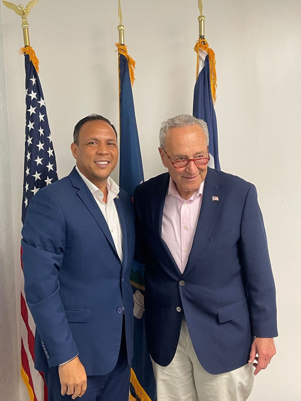“Hoy hemos tenido el honor de recibir en nuestra oficina, la muy grata visita del líder de la mayoría en el Senado de los Estados Unidos, al muy respetado y querido, Senador Chuck Schumer, un hombre que es ejemplo a seguir, con quien conversamos sobre los temas de vivienda, seguridad, educación entre otros aspectos “; Dijo Álvarez al conversar con este reportero.