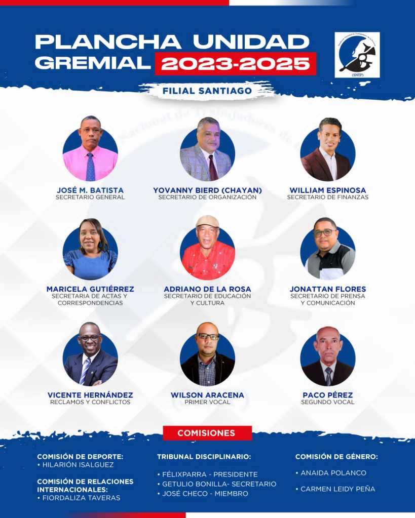 Santiago de los Caballeros.- La Comision Electoral del Sindicato Nacional de Trabajadores de la Prensa -SNTP-, Seccional Santiago, recibió formalmente la Plancha «UNIDAD GREMIAL», que preside el Telefoto reportero Jose Batista.
