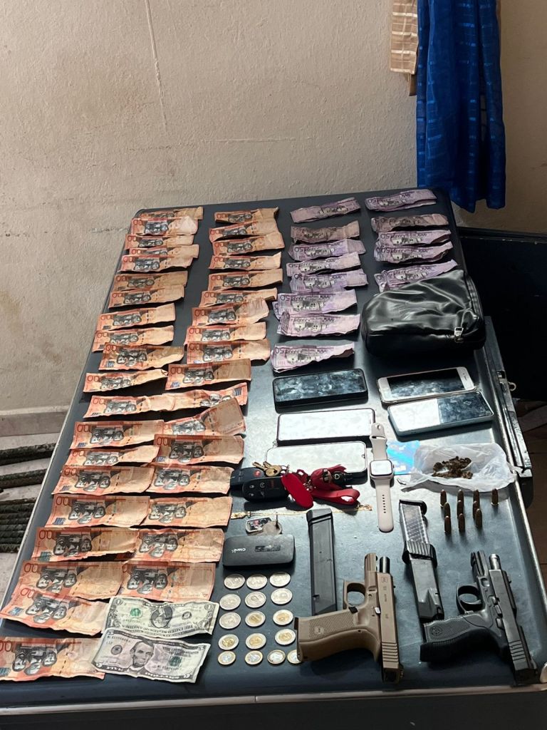 Santiago de los Caballeros, 23 de Agosto del 2023.- Apresado hombre mediante operativo por agentes policiales de investigaciones, tras ocuparle dos pistolas sin documentos, una de ellas reportada como sustraída, así como también sustancias ilícitas, diversos celulares, dinero en efectivo y dólares.