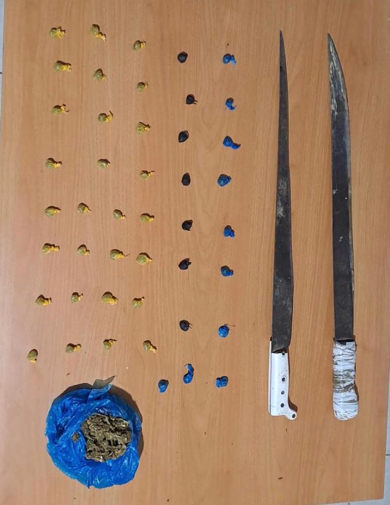 Asimismo, los agentes ocuparon 46 porciones del mismo vegetal y dos armas blancas, en operativos realizados en los sectores de Hatico y Las 300, de Mao, donde desaprensivos que se encontraban en dichos lugares lograron escapar.