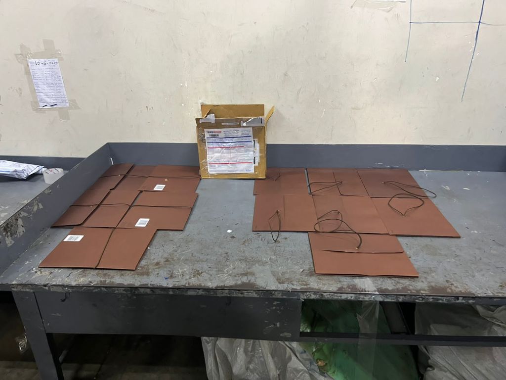 Tras abrir la caja se encontraron varios folder de color marrón, contendiendo un doble fondo con cinco laminas de cocaina, con un peso premilinar de casi medio kilogramo.