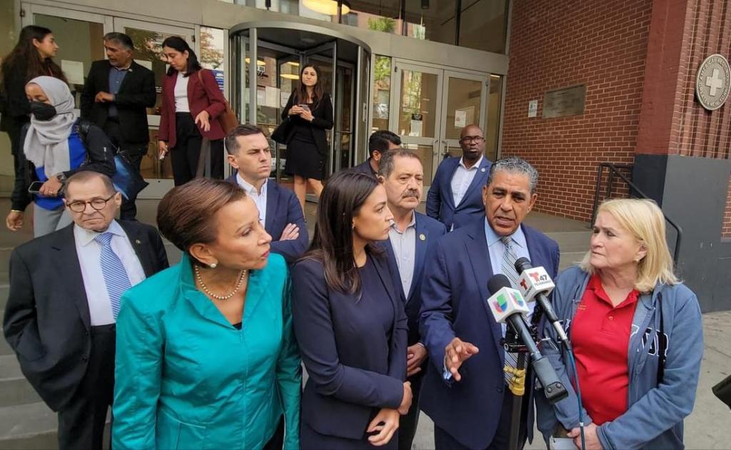 NUEVA YORK. —Una delegación de miembros del Congreso encabezada por los representantes Adriano Espaillat (NY-13) y Alexandria Ocasio-Cortez (NY-14), los legisladores emitieron la siguiente declaración conjunta después de su recorrido de evaluación por las instalaciones de la ciudad de Nueva York designadas para apoyar y alojar a los solicitantes de asilo recién llegados.