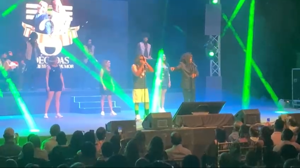 El show inició con su emblemática “banda” de músicos, un grupo de bailarines y la presencia de los llamados “reyes del humor”, quienes al salir a escena fueron ovacionados por su público del Cibao.