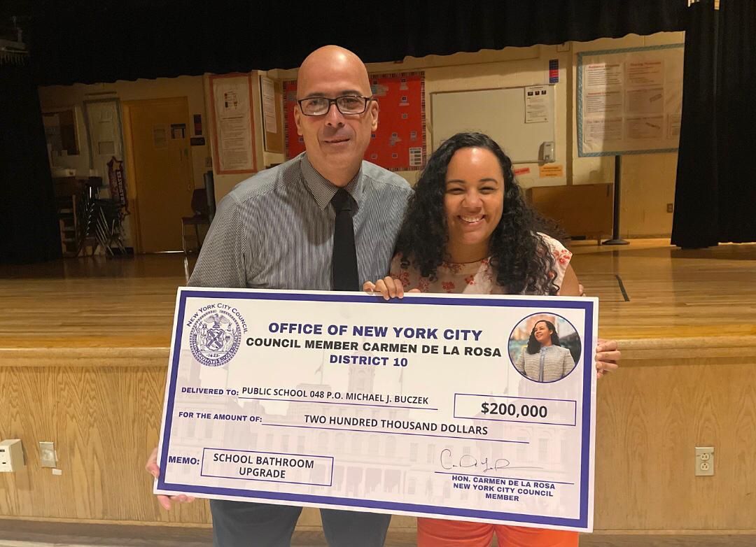 NUEVA YORK. – La concejal de origen dominicana, Carmen De La Rosa, se reunió con administradores escolares de la escuela P.S. 48 para presentar $200,000 dólares asignados para mejoras de baños en el presupuesto de la ciudad para el año fiscal 24.