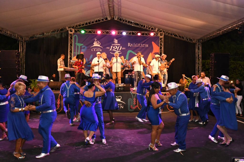 El Grupo Bonyé, integrado por Félix Báez, Francisco (chino) Méndez, Néstor Sánchez, Franklin Soto y Roberto Bobadilla, presentó un diverso repertorio de merengue, son, salsa y boleros que llenó de energía el ambiente, marcando el festejo de los 120 años de fundación de La Aurora y los 20 años del Centro León y Emisora Raíces.