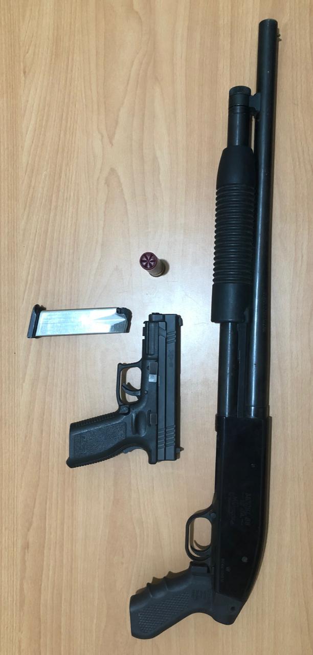 Tras labor de inteligencia y seguimiento, los investigadores policiales lograron dar con el paradero de la pistola marca Springfield Armocry, calibre 9mm., sin cápsulas, así como de la escopeta marca Maverick, calibre 12, serie número MV00280U, con un cartucho para la misma.