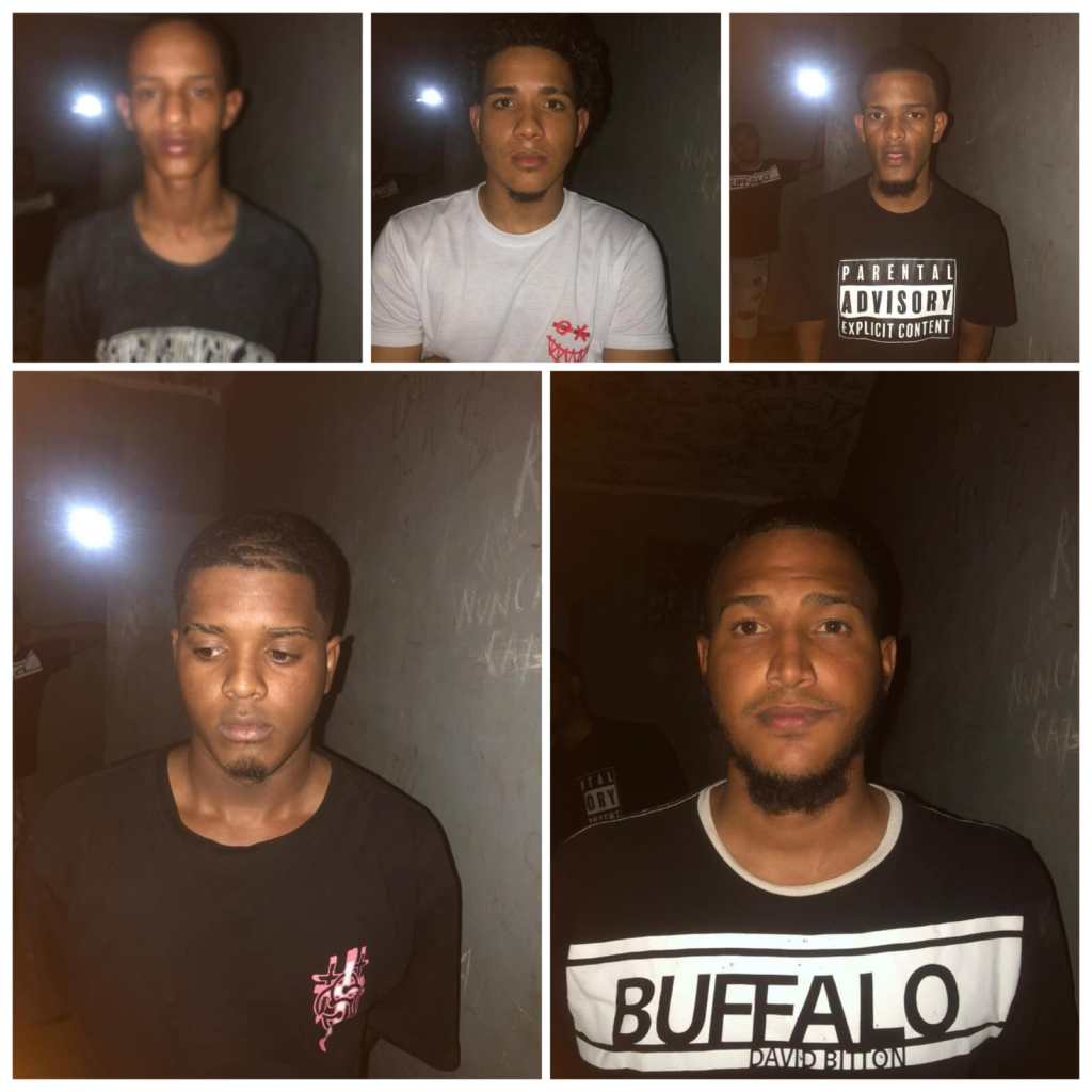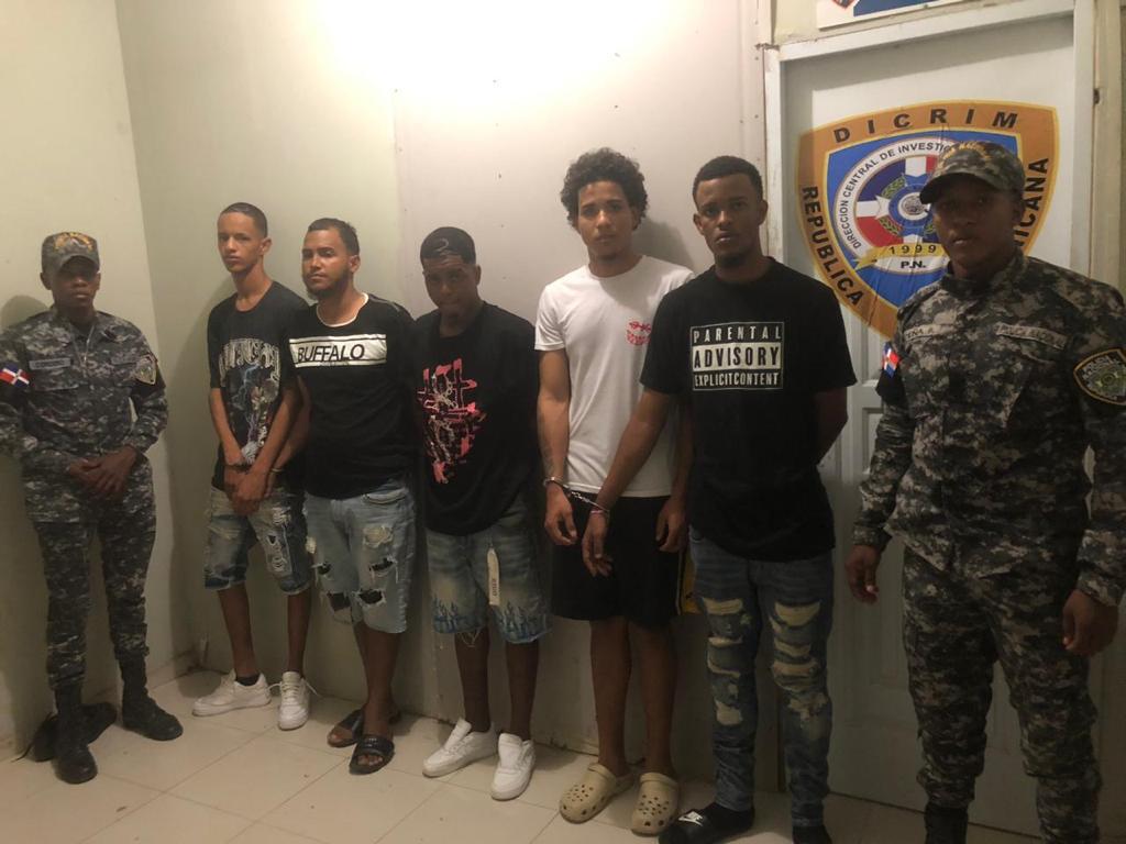 Los detenidos son los nombrados Rubén Darío Díaz Reyes, Leoner Muñoz Almonte, José Manuel Reyes, Graviel Rivera y Manolo Reyes Cueva, cuyas edades oscilan entre los 18 a 28 años, quienes abordaban el carro marca Hyundai modelo Sonata, color blanco, con placa de exhibición año 2017.
