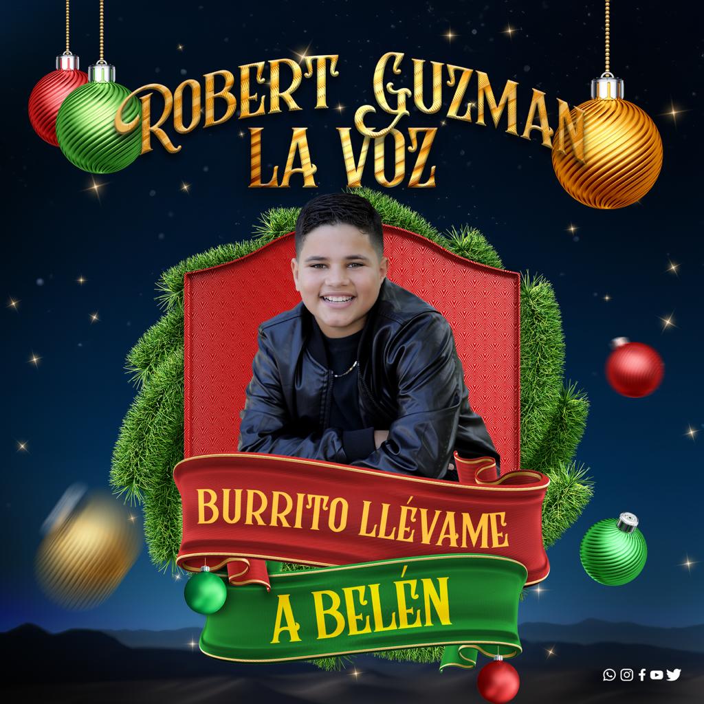 Burrito llévame a Belén, es la nueva propuesta de temporada de Robert Guzmán, «La Voz», el cual ya se puede encontrar en todas las plataformas digitales y que en los próximos días contará con un trabajo audiovisual, el cual recreará las vivencias de ésta hermosa canción, escrita especialmente para éste niño prodigio, que con su voz de ángel, se ha ganado el respeto y la admiración del pueblo dominicano.