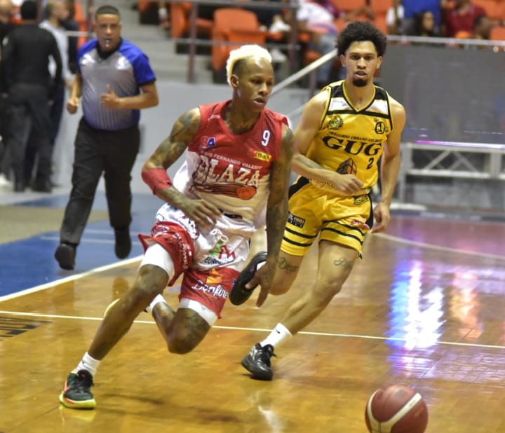 Con ocho puntos de Juan Guerrero el Plaza Valerio dominó el primer parcial 24-21, los del GUG conquistaron el segundo periodo 26-25, para irse al descanso del medio tiempo con el marcador 49-47, a favor de la Plaza, donde Oliver García encabezó la ofensiva de la Plaza con 12 puntos, respaldado por Alex Abreu con 10 unidades y seis asistencias, Juan Guerrero con ocho encestes y dos tableros y Jean Carlos Quezada aportó siete tantos y cinco capturas.