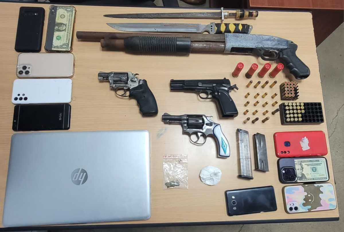 –En las intervenciones resultaron detenidas tres personas, ocupan cinco armas de fuego y drogas.