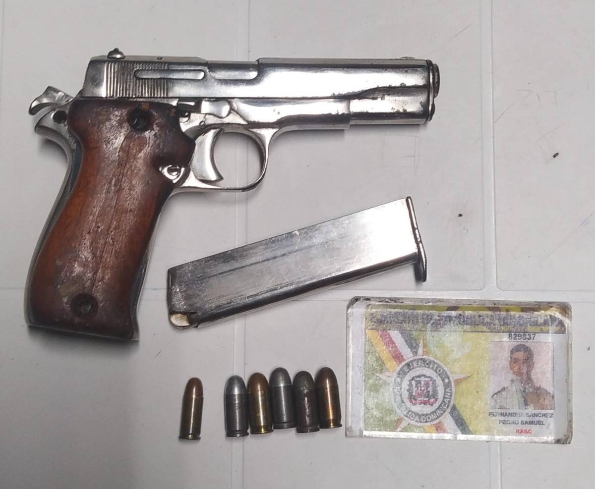 Agrega que mediante labor de seguimiento, de los agentes policiales preventivos e investigativos, horas después de ocurrir el hecho, fue capturado y puesto bajo arresto, a quien al momento de la detención se le ocupó la pistola marca ilegible, calibre 9mm, sin ningún tipo de documentos, utilizada para cometer el hecho y un carnet del Ejercito Dominicano.