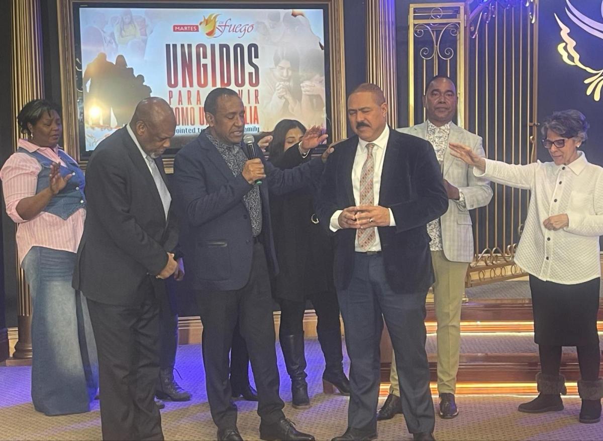 Polanco fue recibido por los pastores Salvador y Kenia Sabino y acompañado de parte de su equipo político presidido por el líder Tirso Piña y la directora de comunicación estratégica Jenny Gómez.