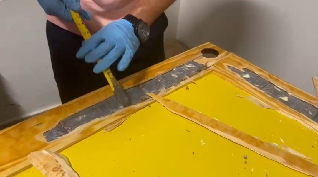 En presencia de un fiscal se procedió a abrir la caja, encontrando dentro una mesa de jugar dominó, en cuyos laterales se ocuparon 16 láminas de cocaína, incrustadas entre la madera, con un peso aproximado a los dos kilogramos.