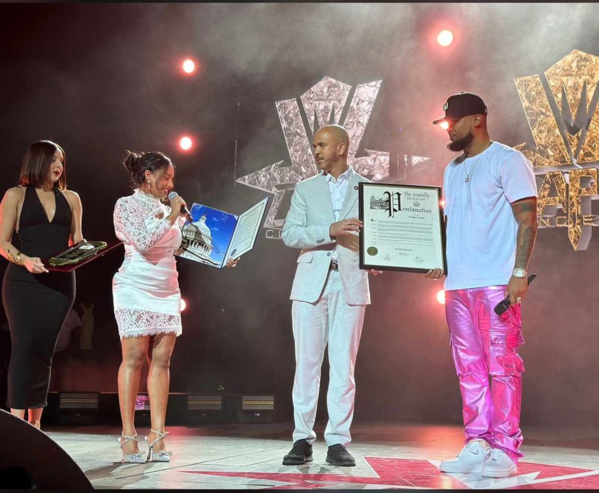 NUEVA YORK. -El exponente de música urbana Avelino Figueroa, conocido por su nombre artístico como “Lápiz Conciente” , recibió la noche de este sábado una Proclama del Estado de Nueva York de la mano de los legisladores de origen dominicano George Álvarez (AD78) y Manny De Los Santos (AD72) en un evento a casa llena.