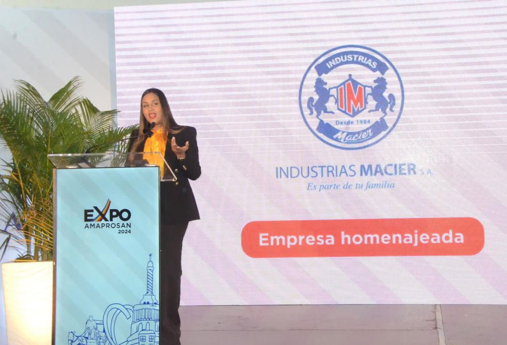 En las palabras centrales, la comerciante Hilsa López Olivares, presidenta de la feria Expo Amaprosan 2024, destacó las cualidades de Industrias Macier y su trayectoria de desarrollo, en sus cuatro décadas de fundada.