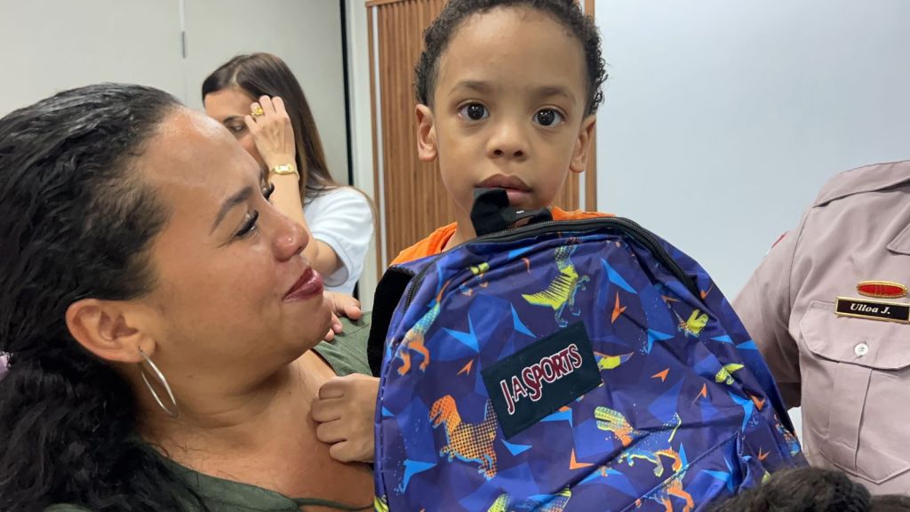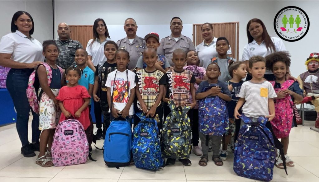 Santiago, Rep. Dom.- En un ambiente de alegría, cientos de niños fueron agasajados con mochilas que contenían útiles escolares, gracias a la señora Ingrid Castro de Guzmán, presidenta de la Asociación de Esposas de Oficiales de la Policía Nacional (ASEOPNA), y a la Dirección General de nuestra institución, bajo el mando del director general, mayor general Ramón Antonio Guzmán Peralta.