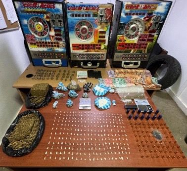 Confiscan drogas, balanzas, máquinas tragamonedas, dinero en efectivo y otros elementos