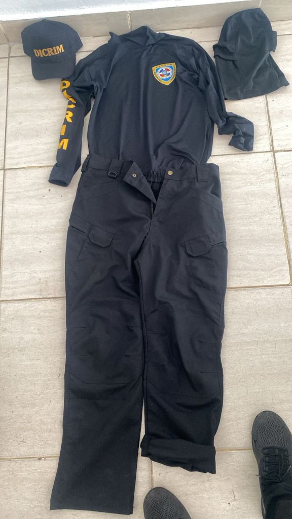 Durante la requisa, se les incautó una pistola marca Taurus, serie No. TCS15742, con su cargador y siete cápsulas, sin ningún tipo de documentación. También se encontró una funda con una gorra, una chaqueta con identificación del DICRIM y un pasamontañas.