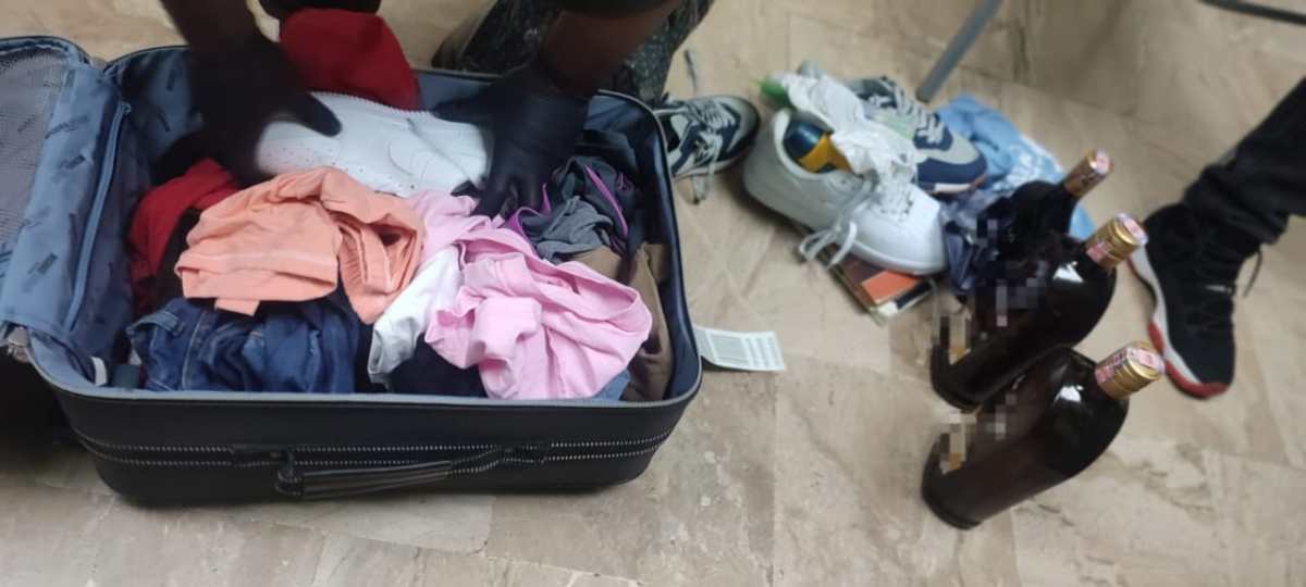 Por instrucciones del fiscal actuante, se procedió a abrir el equipaje, encontrando en su interior tres botellas llenas de un líquido, que tras ser analizado, resultó positivo a cocaína líquida, según el análisis del Instituto Nacional de Ciencias Forenses (INACIF).
