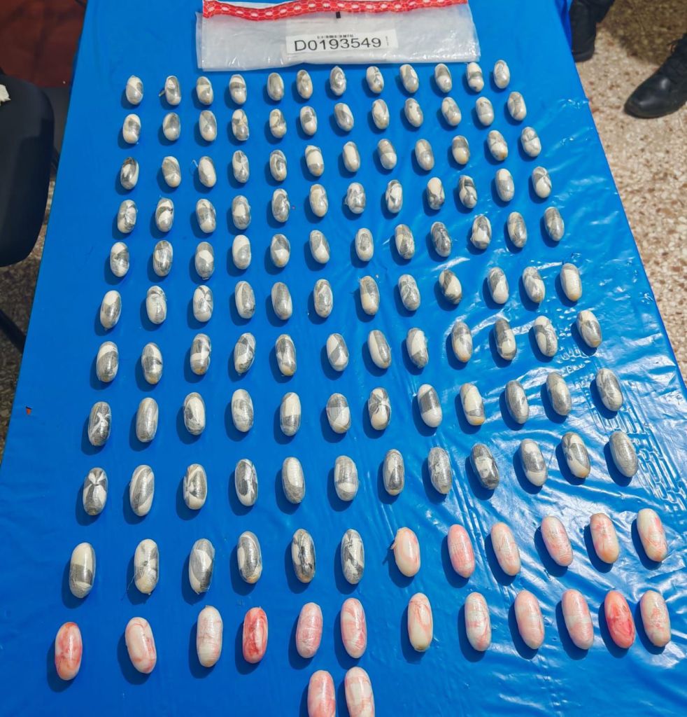 El nigeriano de 58 años, con nacionalidad española, fue trasladado a un centro de salud, donde en manos de médicos especialistas expulsó un total de 134 bolsitas presumiblemente cocaína, con un peso superior a los dos (02) kilogramos.