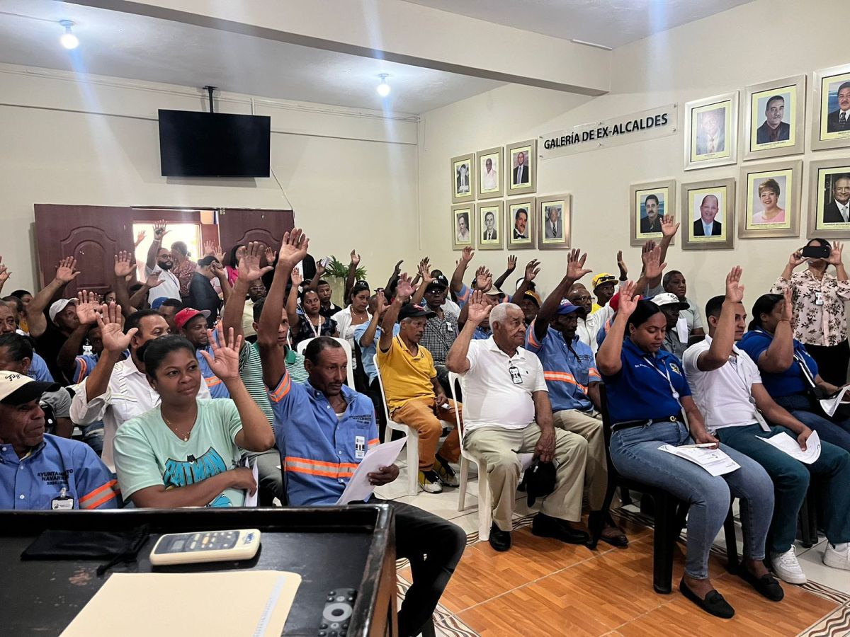 Asamblea celebrada en el salón de Sesiones María Caridad Rodríguez del Ayuntamiento Municipal de Villa Bisonó, encabezado por el alcalde Noel Peralta.