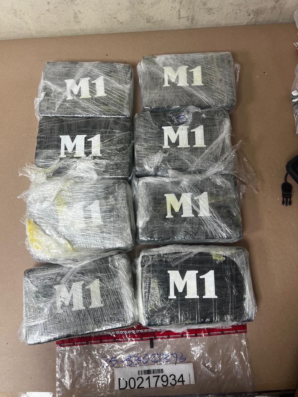 Por instrucciones del fiscal actuante, el recipiente fue trasladado al área de verificación, donde se confiscaron ocho paquetes de cocaína envueltos en varias fundas plásticas, con un peso total de 8.23 kilogramos, según el análisis realizado por el Instituto Nacional de Ciencias Forenses (INACIF).