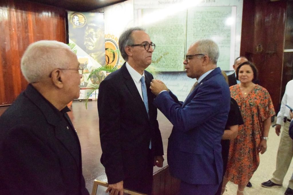 El pergamino contentivo de la resolución le fue entregado por el periodista Carlos Manuel Estrella, en su calidad de presidente de la sesquicentenaria institucional cultural, quien también colocó a Mármol, en la solapa de su chaqueta, el botón alusivo al sesquicentenario de Amantes de la Luz.