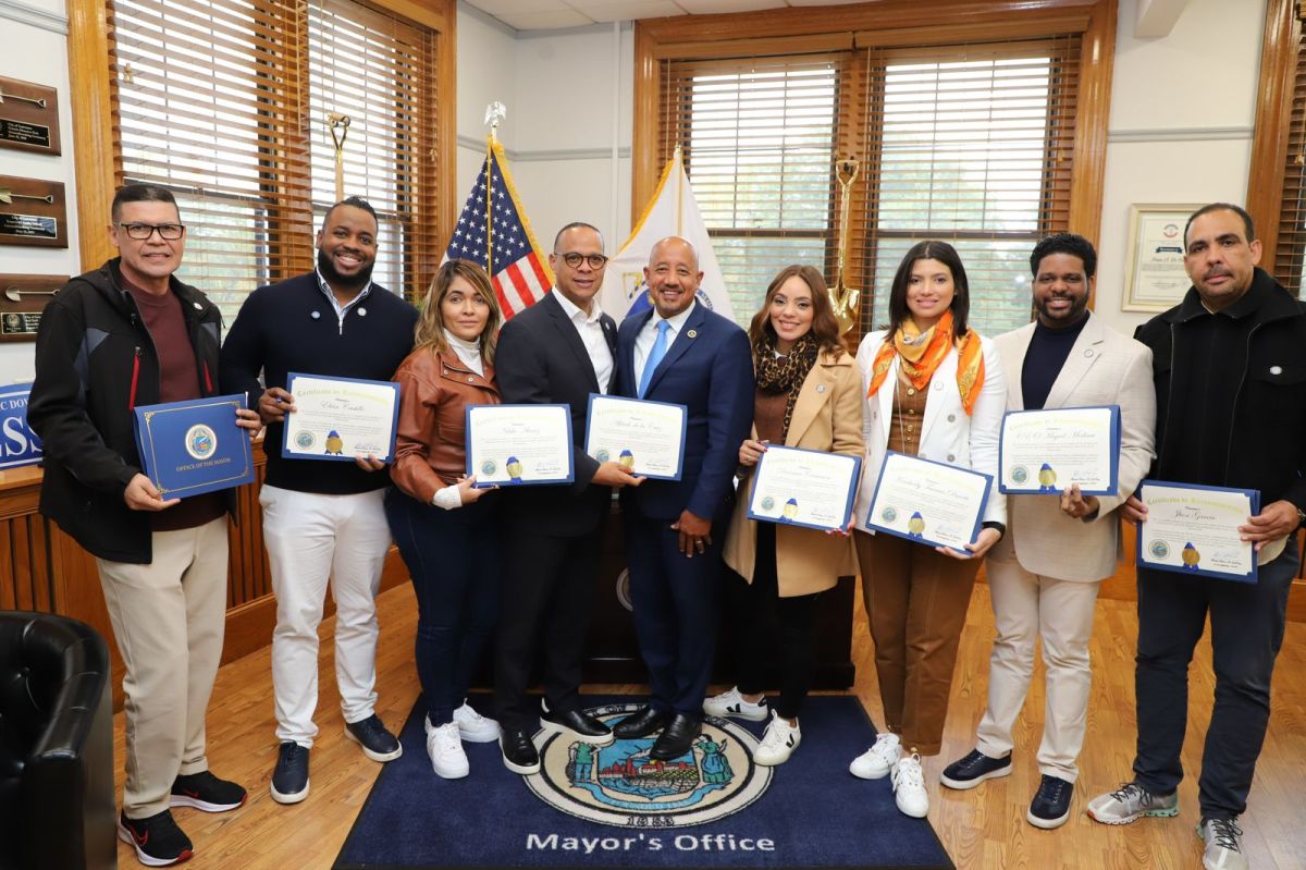 Lawrence, Massachusetts.– El alcalde de esta ciudad, Brian De Peña, entregó reconocimientos especiales al Grupo de Medios Panorama, al doctor Ricardo Nieves y a los integrantes del programa Panorama de la Mañana: Elvin Castillo, Alfredo de la Cruz, Dannira Caminero, Kimberly Taveras y Nilda Analiz, por la transmisión especial realizada en Boston, Estados Unidos.